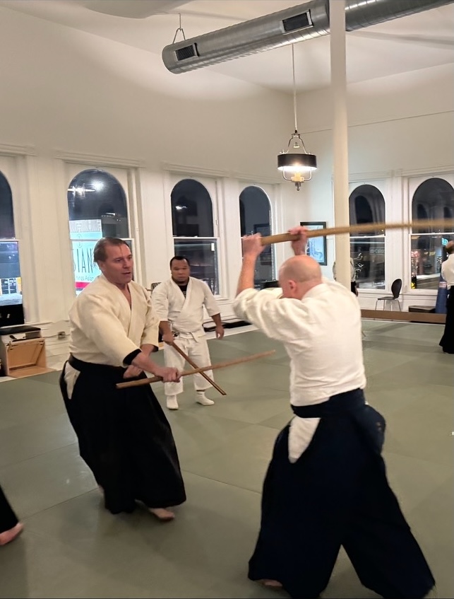 Kenjutsu is a classical Japanese martial art of swordmanship. Kenjutsu practice usually consists of partnered training using wooden swords (bokken). It may also include training against multiple attackers, and training with other weapons, such as short staff (jo) and wooden knives (tanto). Sekkin Sen Kenjutsu is a style of close quarters Japanese swordmanship developed by Bruce Heckathorn Sensei.